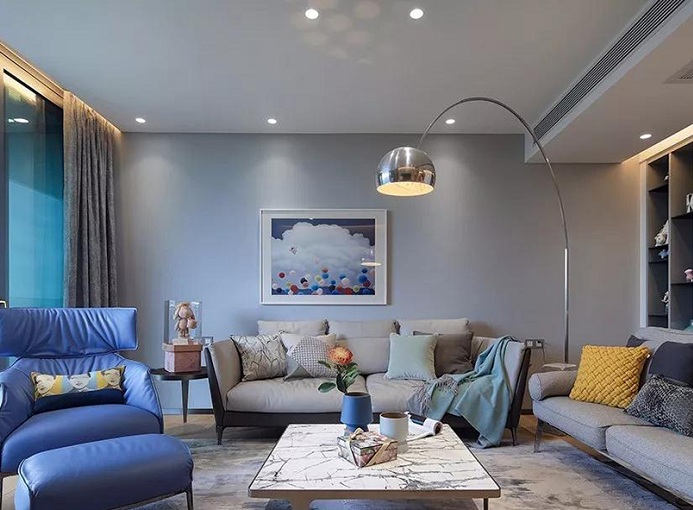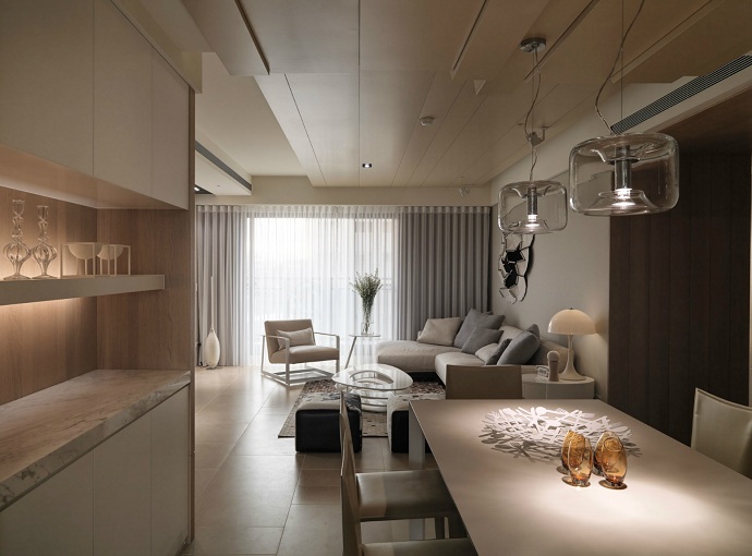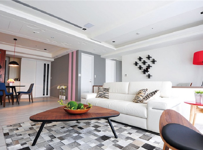 本案采用新中式混搭的风格,没有使用以往心中事单纯的木制材料与原木色,更多的使用了白色与黄色这两种明亮的色调,扩充视觉效果。中式的桌椅、装饰画、装饰品这些忠实原色与现代风格的材料相结合,保留了中式本身带有文化韵味与内涵品质,也不会过于沉闷,