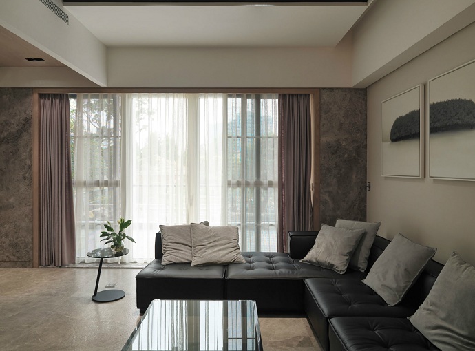 北欧简洁,日式简单都与中式内敛格格不入,而美式刚好有一种深沉感可以和中式无缝搭配。 茶几、沙发、太师椅整齐有序,典型中式传统布局,所谓斋庄中正便是如此。 有别于传统中式全部都是红木长椅,以美式简洁的沙发替代,使空间变得柔软起来。